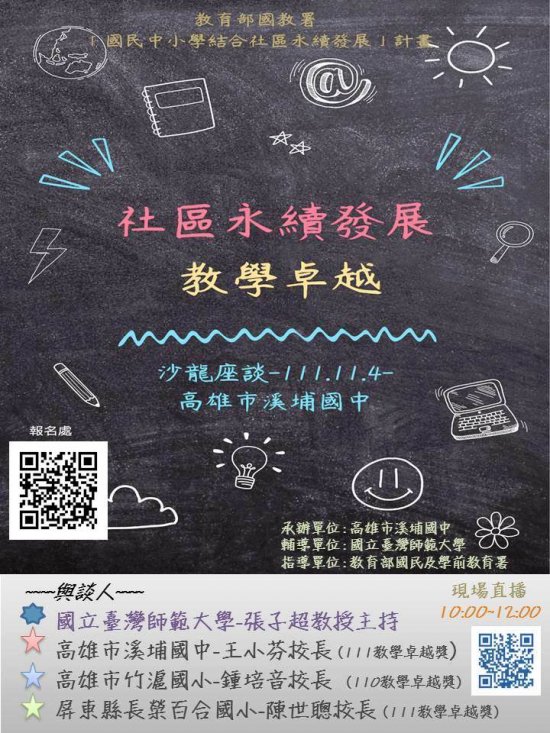 | 四、 | 本場次座談名額有限,論壇部分將提供現場實況轉播。連結可至: 「國民中小學結合社區永續發展計畫」 臉書社群(https://www.facebook.com/TLinrural)。 |