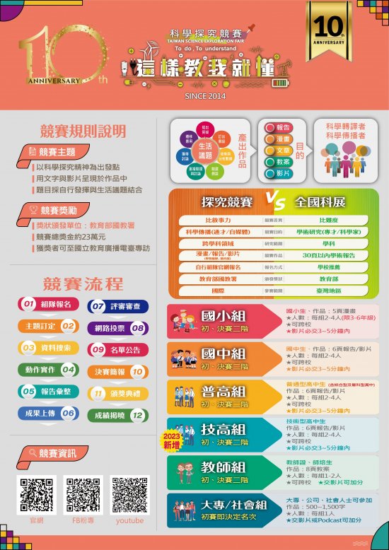 | 二、 | 報名資訊、競賽方式與獎勵等相關資料請參閱附件或計畫網站(官網:http://sciexplore.colife.org.tw/;粉絲專頁:https://www.facebook.com/ScitechvistaFair/)。相關事宜如有疑義,請逕洽競賽承辦人施先生(電話0988-415777,電子信箱:sciexplore.tw@gmail.com)。 |