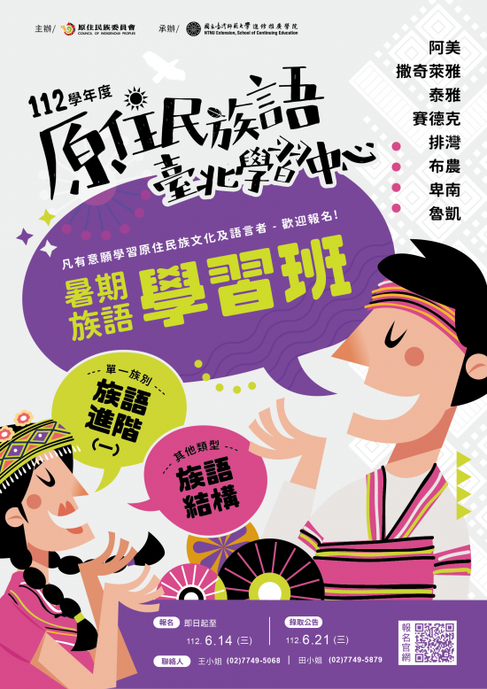 | (一) | 原民語言學習中心公務信箱:scettlc@deps.ntnu.edu.tw。 |