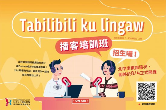 | 二、 | 為擴散傳承原住民族語言永續之理念,基金會於112年度辦理旨揭培訓課程,期鼓勵大眾運用Podcast平台分享原住民族語言與文化知識,創作以族語或雙語為主體之Podcast頻道節目,保留珍貴之語言寶藏。 |