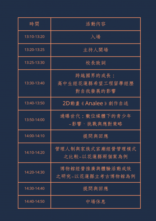 | 一、 | 活動時間:114年5月21日(三)13時10分至16時10分。 |