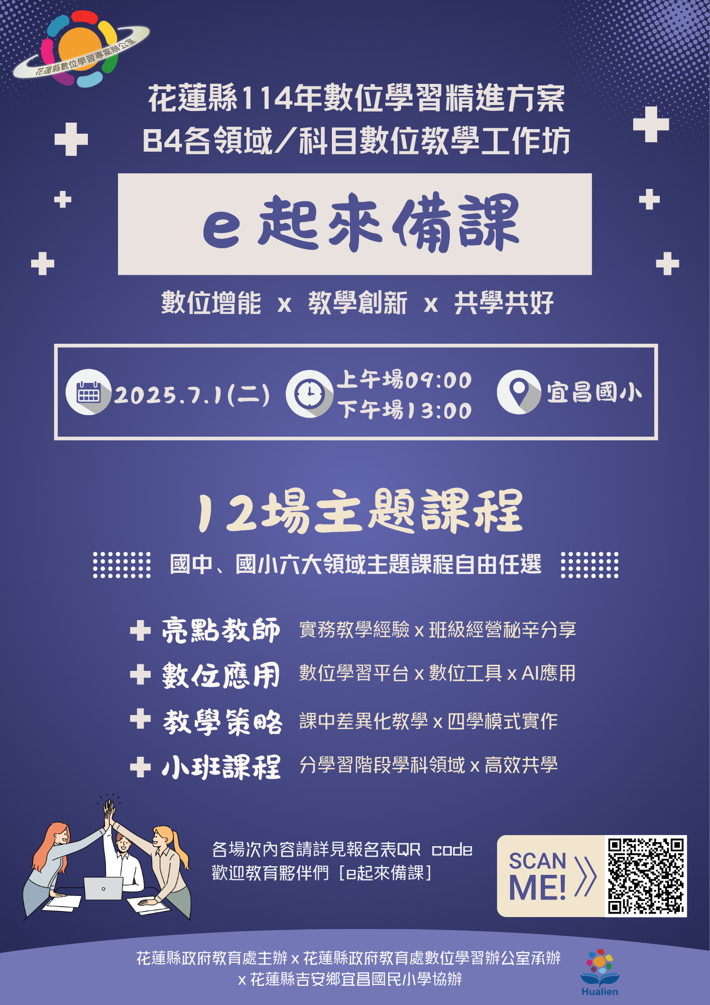 (三)場次:國中小各領域數位教學應用與實作,各場次課程內容請詳見報名表及附件。