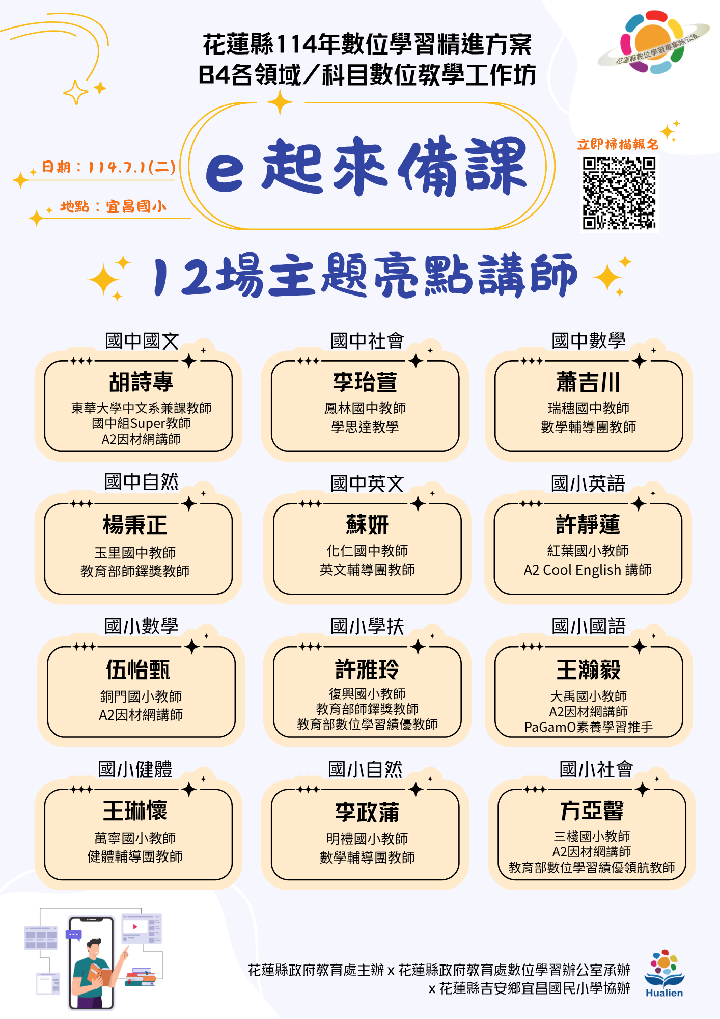 (一)時間:114年7月1日(二)上午場次9時至12時,下午場次13時至16時。