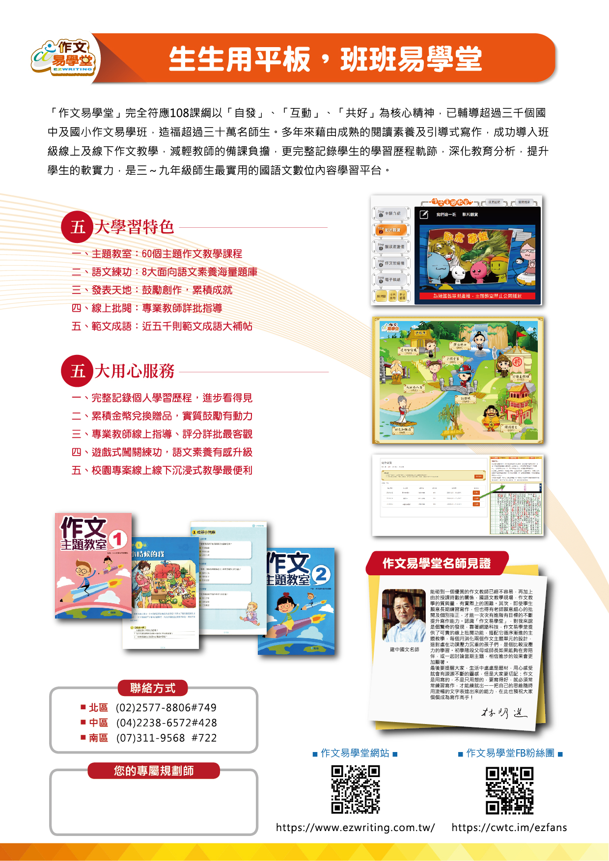 三、「作文易學堂」多年來已輔導超過三千個國中、小班級,藉由前臺成熟的閱讀素養遊戲式題庫及引導式寫作教學動