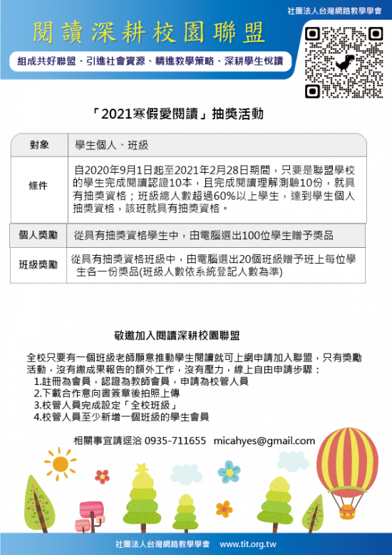 二、 閱讀深耕校園聯盟學校「2021 寒假愛閱讀」抽獎活動辦法: