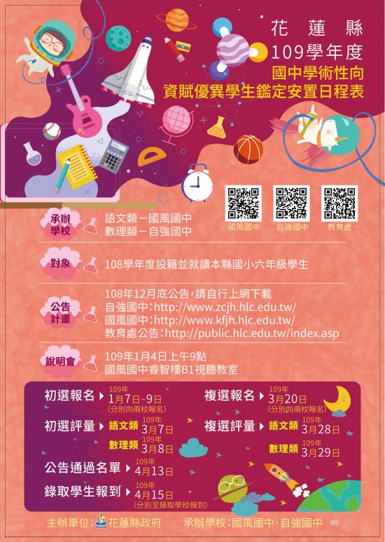 四、設班學校:國風國中(語文類)、自強國中(數理類)。