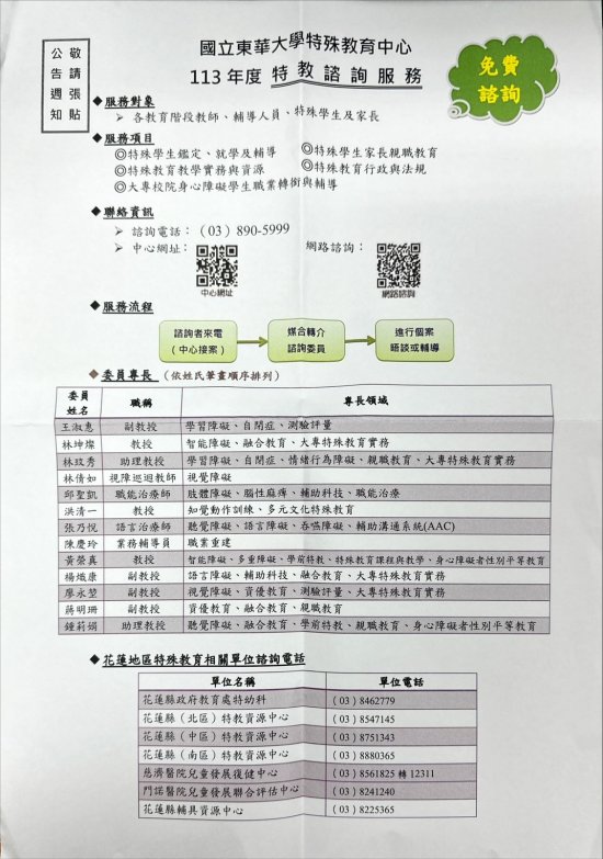 全國特殊教育資訊網「諮詢系統」提供網路諮詢服務(連結網址 https://special.moe.gov.tw/consultation.php?paid=58 ),歡迎多加利用。