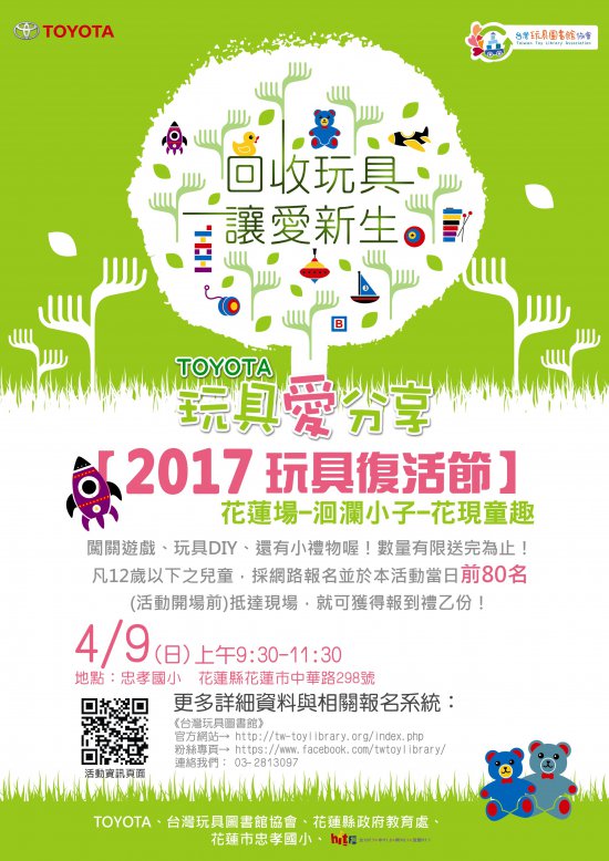 台灣玩具圖書館協會辦理TOYOTA玩具愛分享「2017玩具復活節-洄瀾小子『花現童趣』」活動