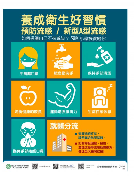 4、多加利用衛生福利部疾病管制署流感專區(網址為 http://www.cdc.gov.tw )之相關衛教宣導資料,透過相關集會場合、家庭訪視、家庭聯絡簿、宣導單張、佈告欄及跑馬燈等方式,將流感防治正確知識傳達學生及其家人,強化師生及家長對流感防治之了解與重視。
