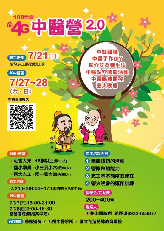 (一)營隊名稱: 108 年 4G 中醫營 2.0 。