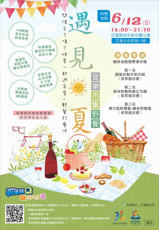 旨揭活動於 109 年 6 月 12 日下午 16 時假本府前石雕公園,現場提供免費吃冰、打卡送風車、趣味遊戲、音樂及市集,邀請大家一同參與。