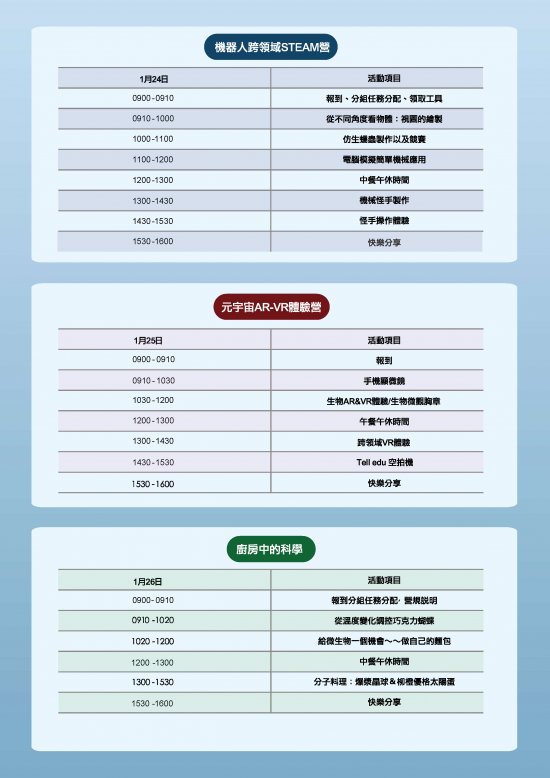 說明: 一、本校將於 111 年 1 月 24 日、 25 日及 26 日舉辦寒輔科學營隊。 二、請貴校惠予公告,並鼓勵有興趣之學生踴躍報名參加。