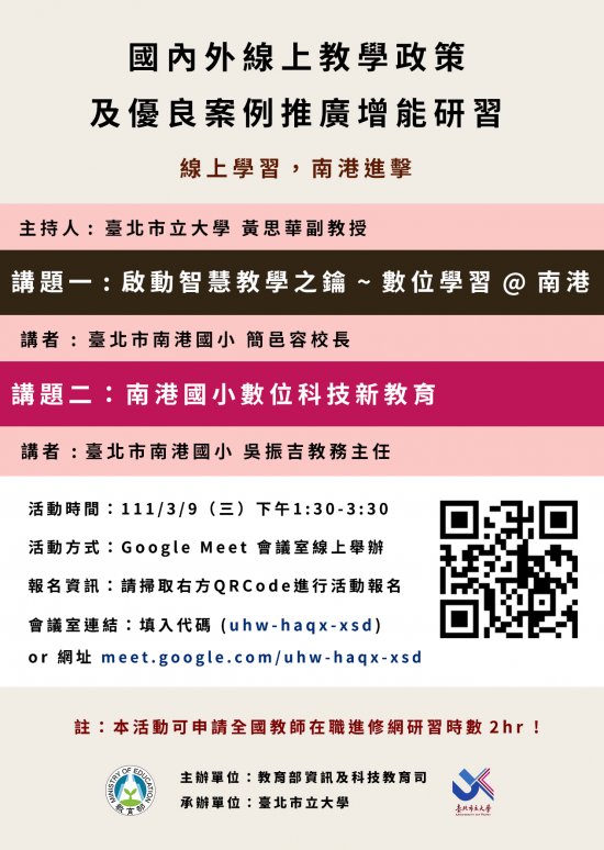 (一)研習時間: 111 年 3 月 9 日下午 13 時 30 分至下午 15 時 30 分。