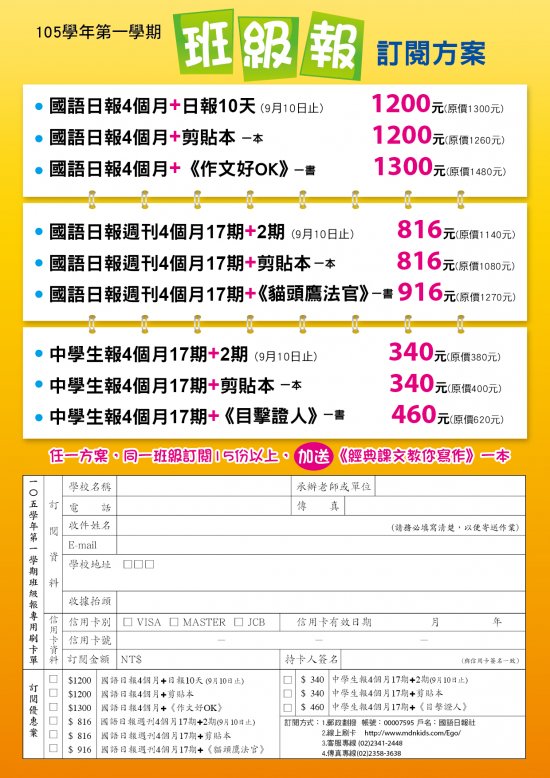 二、請有興趣之班級導師踴躍訂閱。
