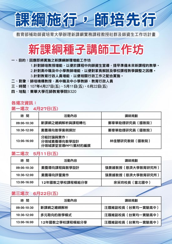 三、研習地點:國立東華大學花師教育學院B320(97401 花蓮縣壽豐鄉大學路二段一號)