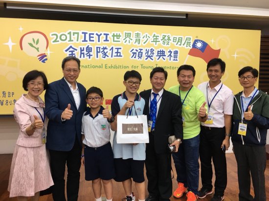 教育部金牌隊伍頒獎典禮~本校 807 蕭嘉葳同學代表台灣赴日本名古屋參加 2017IEYI 世界青少年發明展榮獲金牌~獲得部長頒獎表揚。