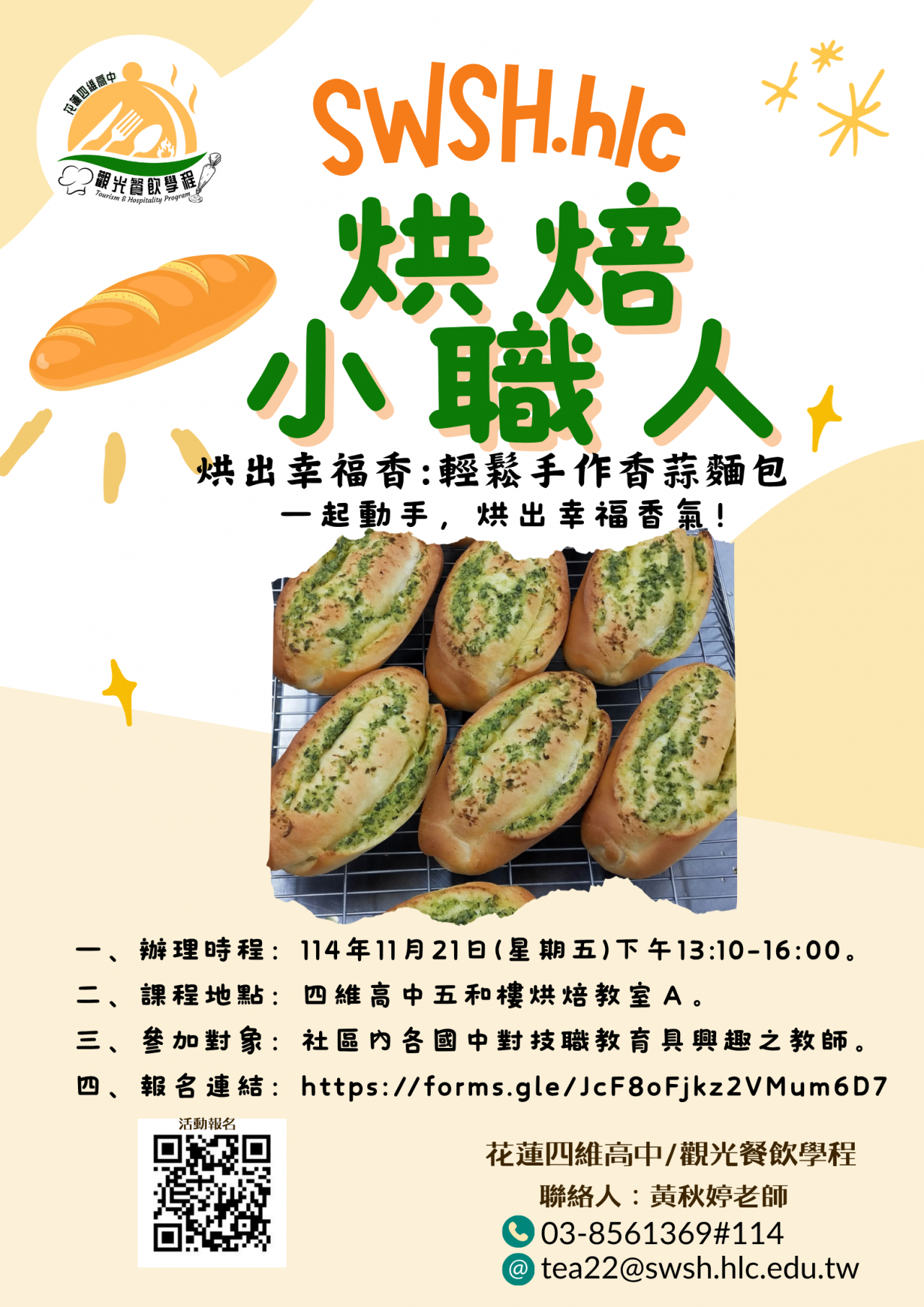 | (六) | 聯絡人:觀光餐飲學程黃秋婷老師,電話: 03-8561369#514 |