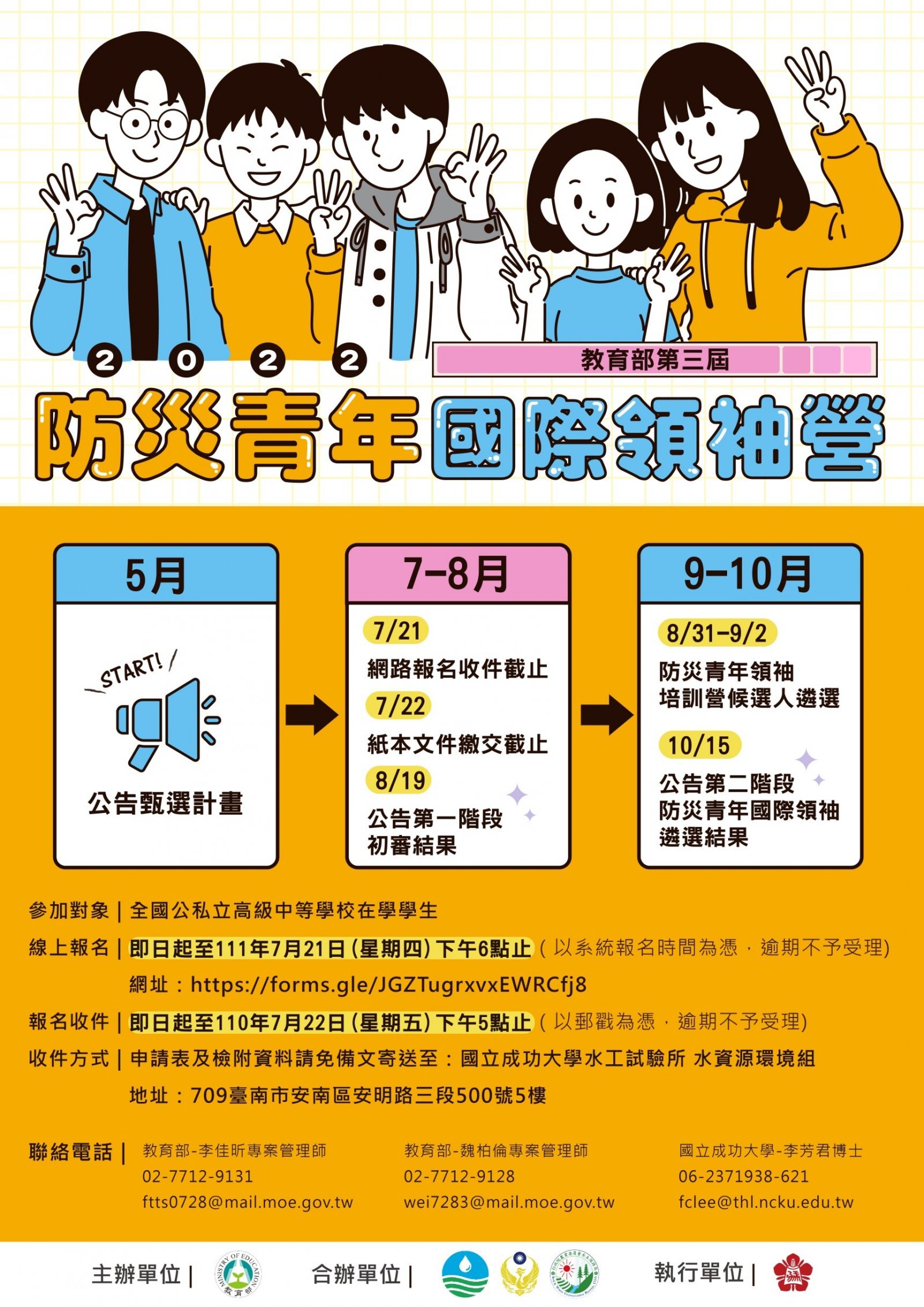 (1) 線上報名:即日起至111年7月21日(星期四)下午6點止(以系統報名時間為憑),逾期不予受理。線上報名網址: https://forms.gle/JGZTugrxvxEWRCfj8 。