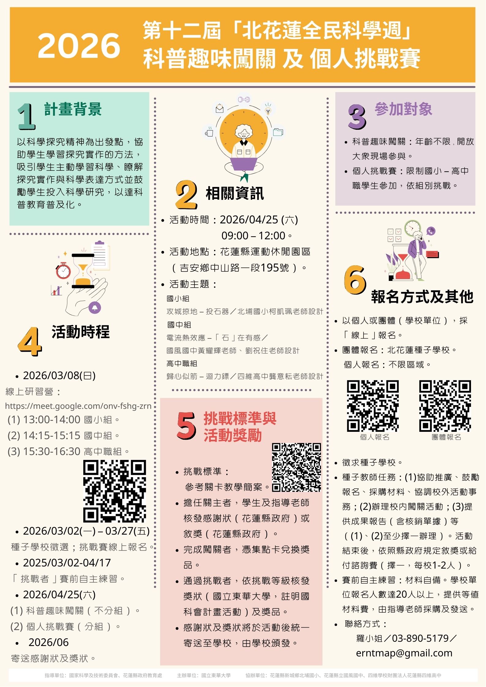 (三) 參加對象:科普闖關不限年齡;個人挑戰賽限國小至高中職學生參加 。