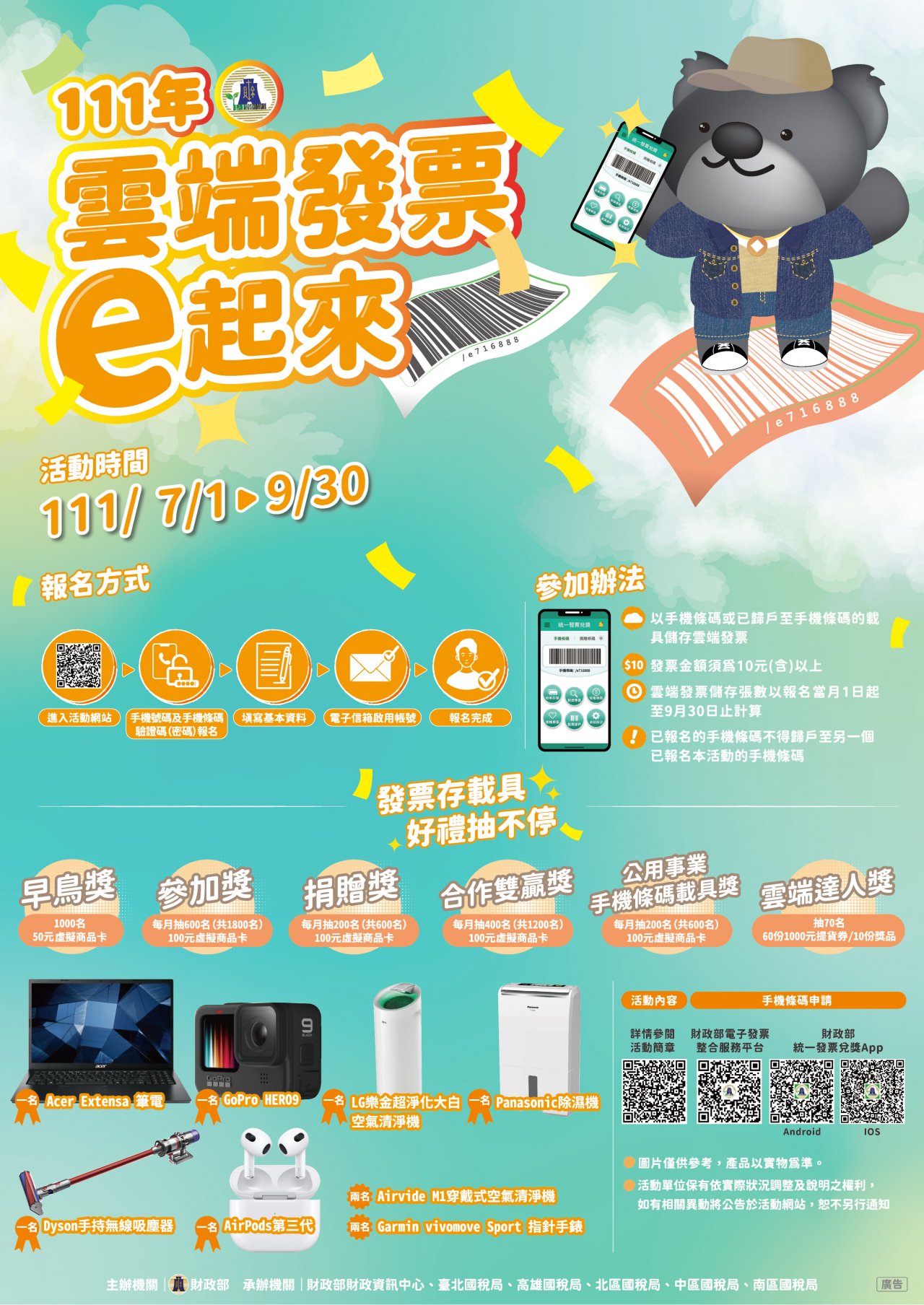一、 依據財政部北區國稅局推動 111 年度「雲端發票 e 起來活動」作業執行計畫辦理。