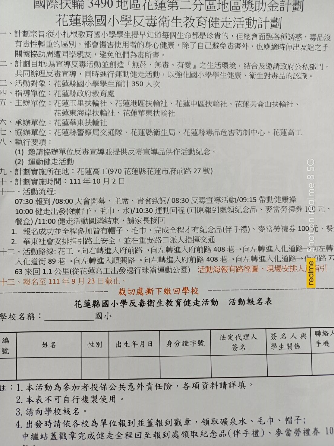 花蓮縣國小反毒衛生教育健走活動