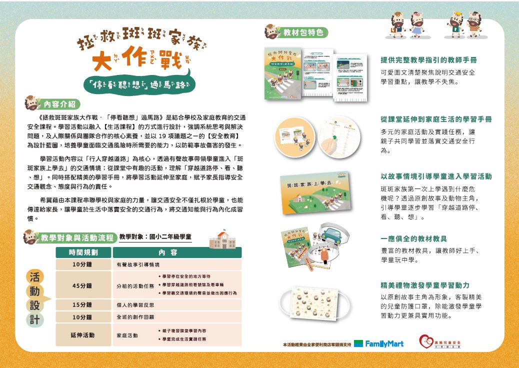 一、 教材包內容係以「行人穿越道路」為核心,並結合教師手冊、學習手冊、教具、教學簡報及宣導品,提供教師落實交通安全教育所需資源,申請流程及內容簡介詳見附件(報名簡章及 DM)。