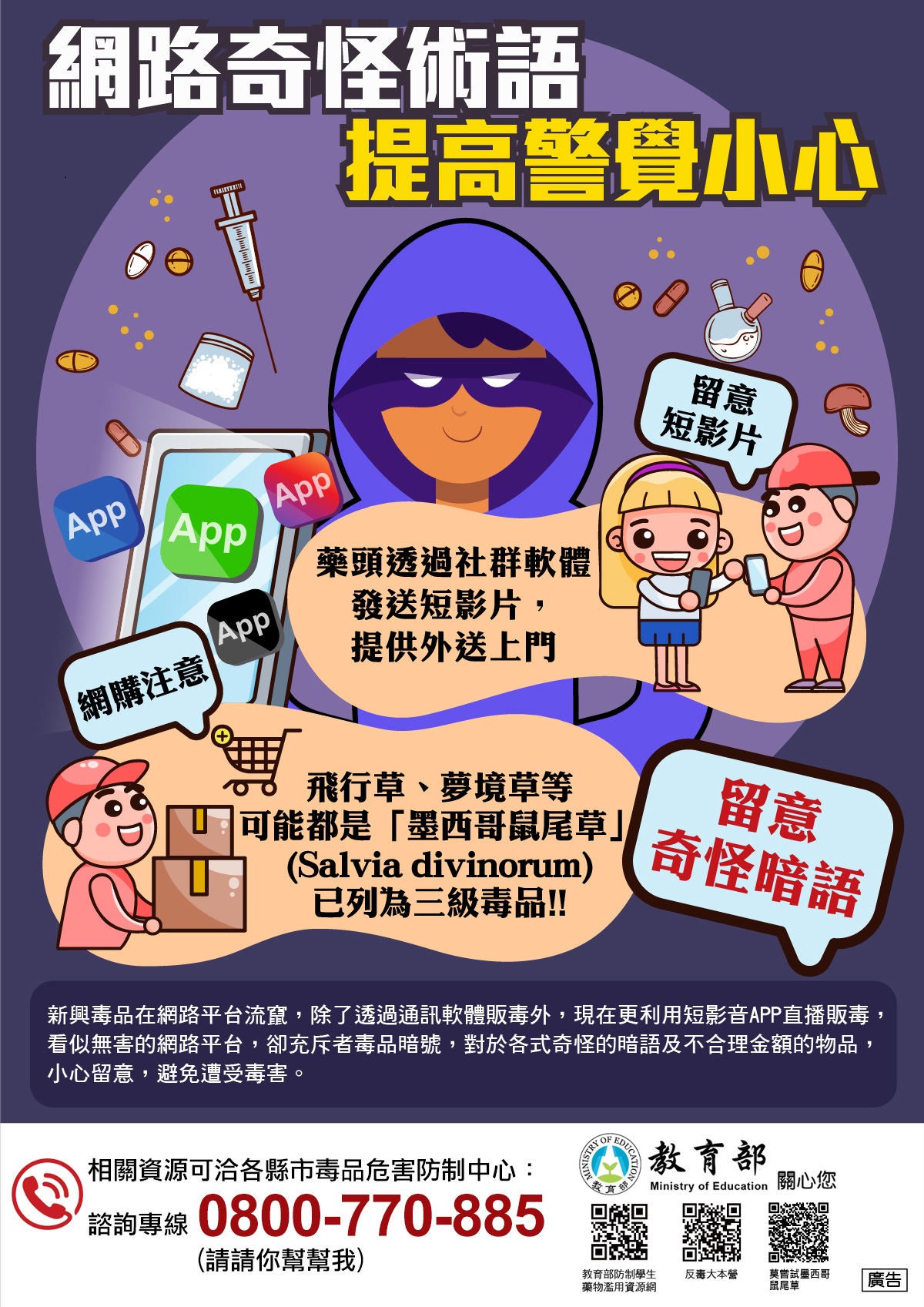 (一) 「破解網路涉毒危機」實體及電子海報及「網路奇怪術語 提高警覺小心」電子海報: