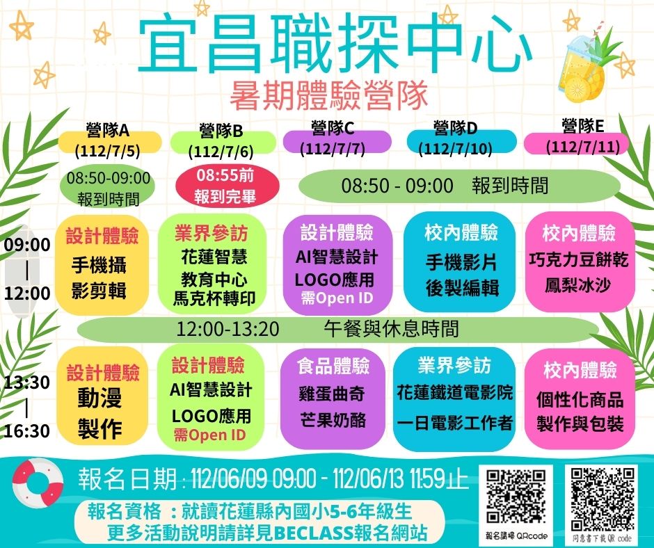 四、 檢附暑期營隊簡章、課程海報、家長及肖像權同意書、報名 QRcode 各一份。
