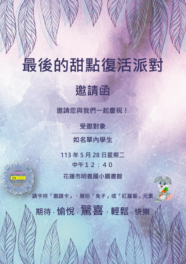 收到此邀請卡的同學可持卡參加以下活動