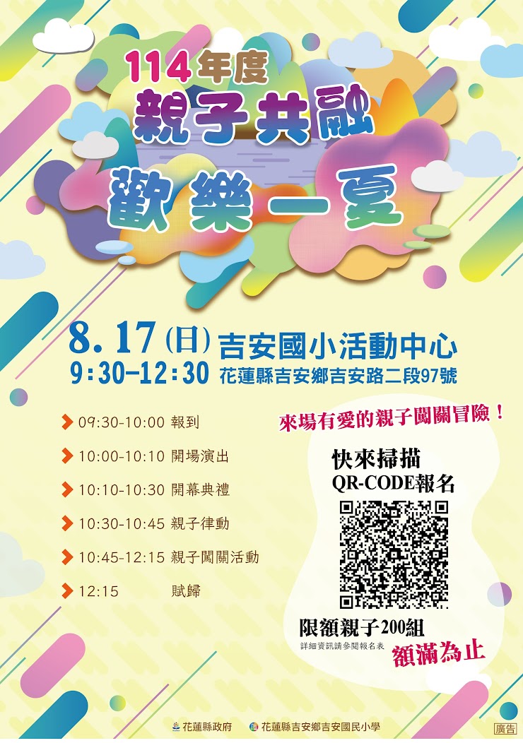 | 五、 | 報名方式:採 QRcode 線上報名,活動詳情請參閱實施計畫及報名文宣,如有疑義,請逕洽吉安國小教務處林主任(聯絡電話: 03-8523984 轉 111)。 |