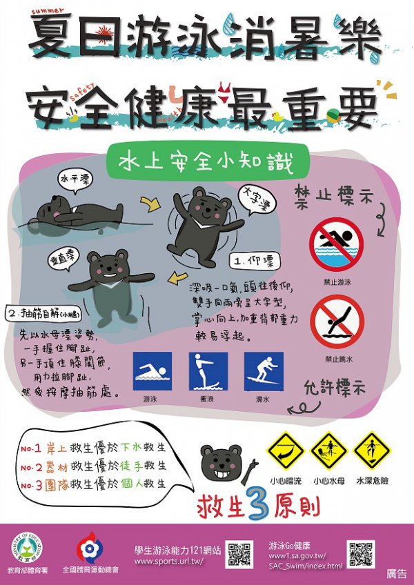 「夏日游泳消暑樂 安全健康最重要」水域安全宣導海報電子檔,詳請見附檔。