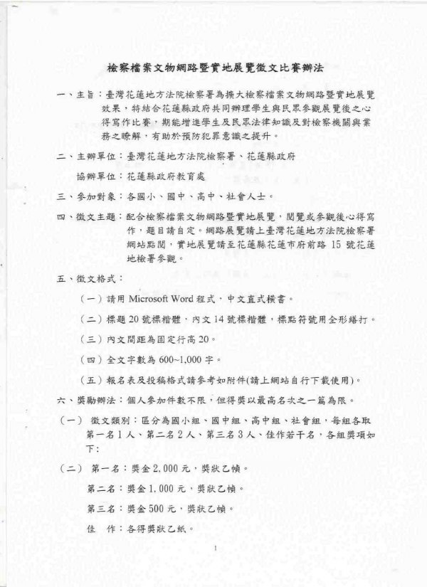 2.參考網頁:台灣花蓮地方法院檢察署