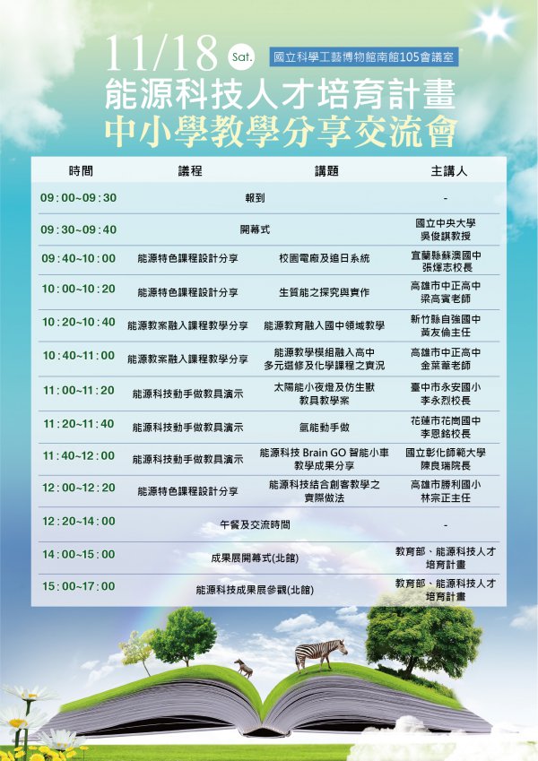| 二、 | 旨揭計畫謹訂於 106 年 11 月 18 日(六)假國立科學工藝博物館南館 105 會議室舉辦。 |
