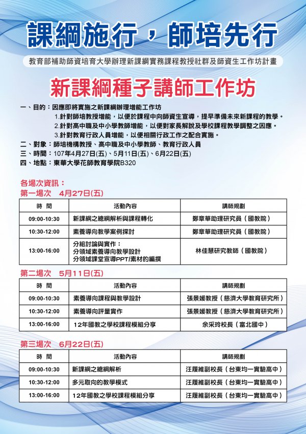 三、 研習地點:國立東華大學花師教育學院 B320(97401 花蓮縣壽豐鄉大學路二段一號)