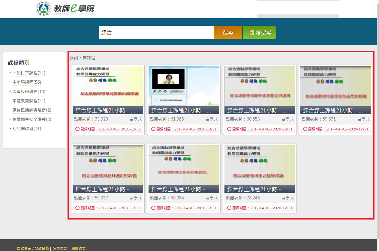 另線上教師 E 學院綜合領域關鍵 21 小時課程已重新開啟,請欲修習課程的師長盡快完成線上課程。