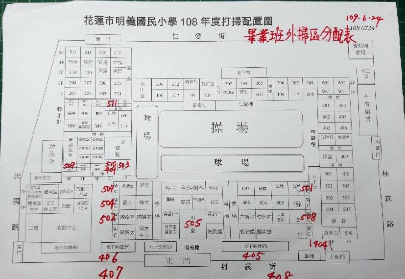 謝謝各班協助畢業班外掃區域分配