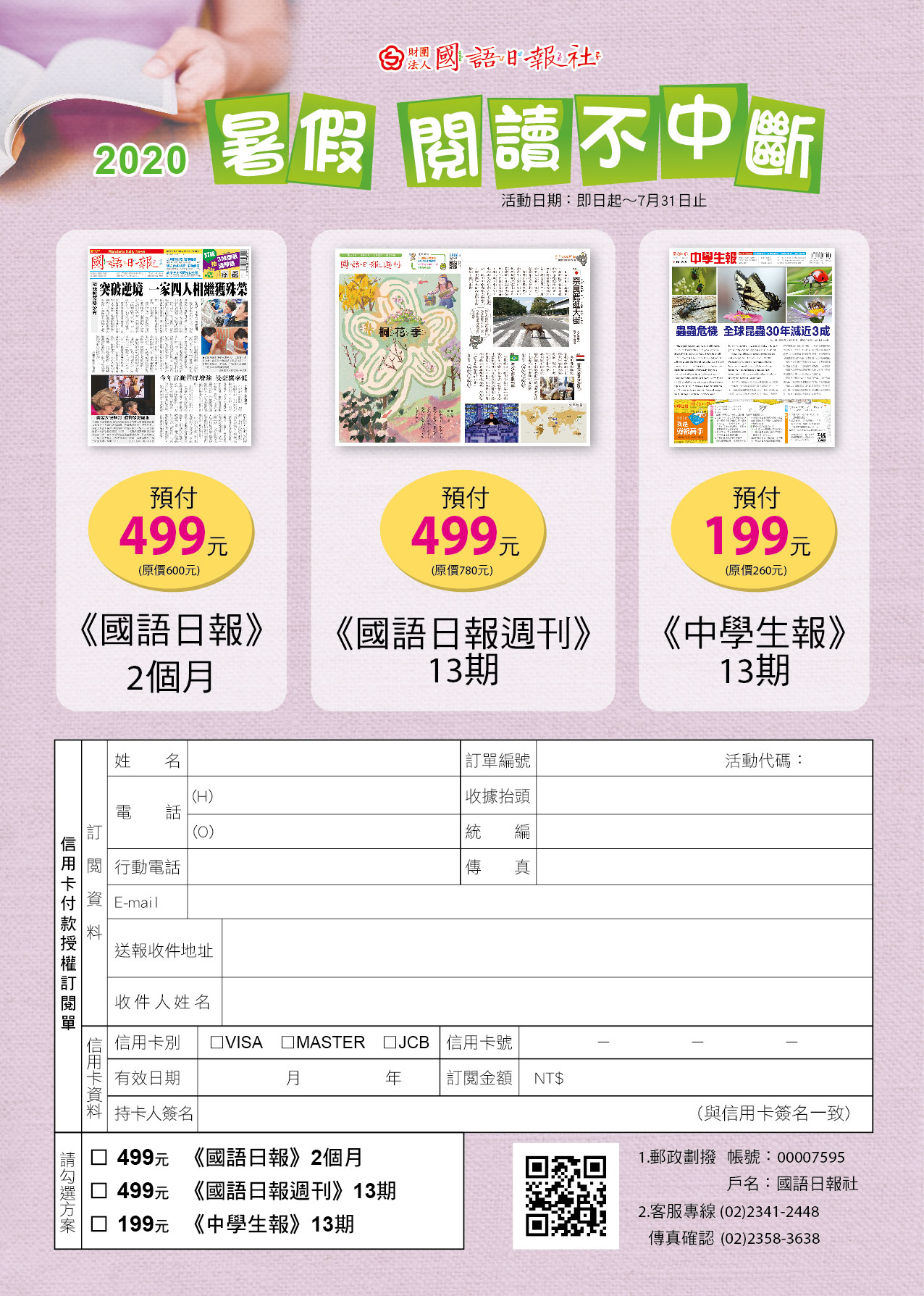 一、 本社推廣學童於暑假期間不中斷閱讀,即日起推出「暑假閱讀不中斷」優惠訂閱專案。
