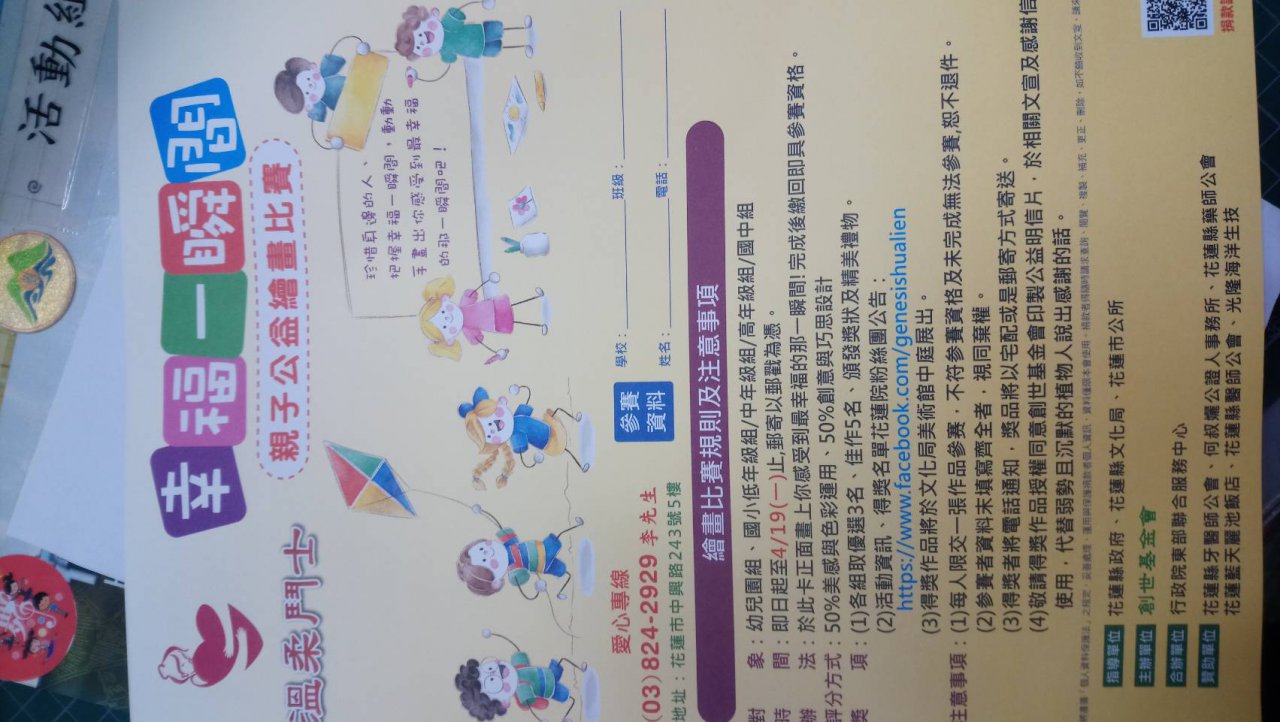 幸福一瞬間親子公益繪畫比賽校內收件日改為  4/15 日