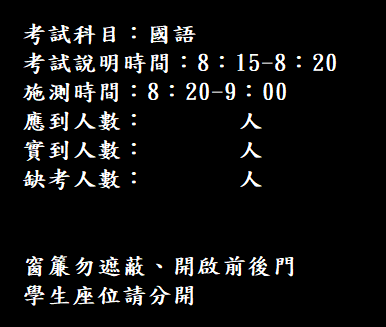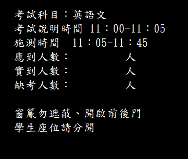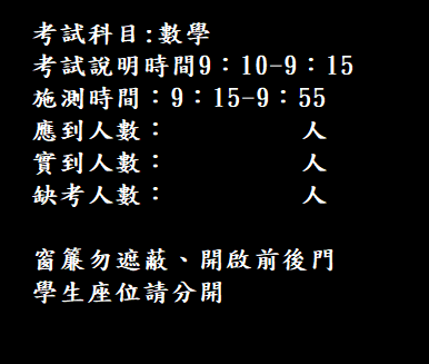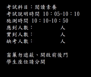 請避免於施測時程安排校內或校外各項活動影響測驗進行。