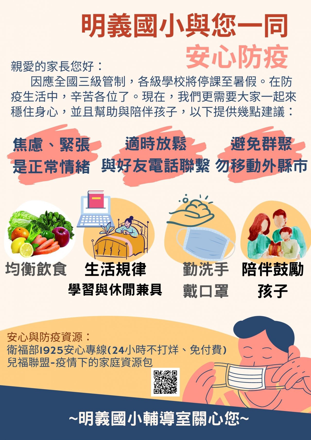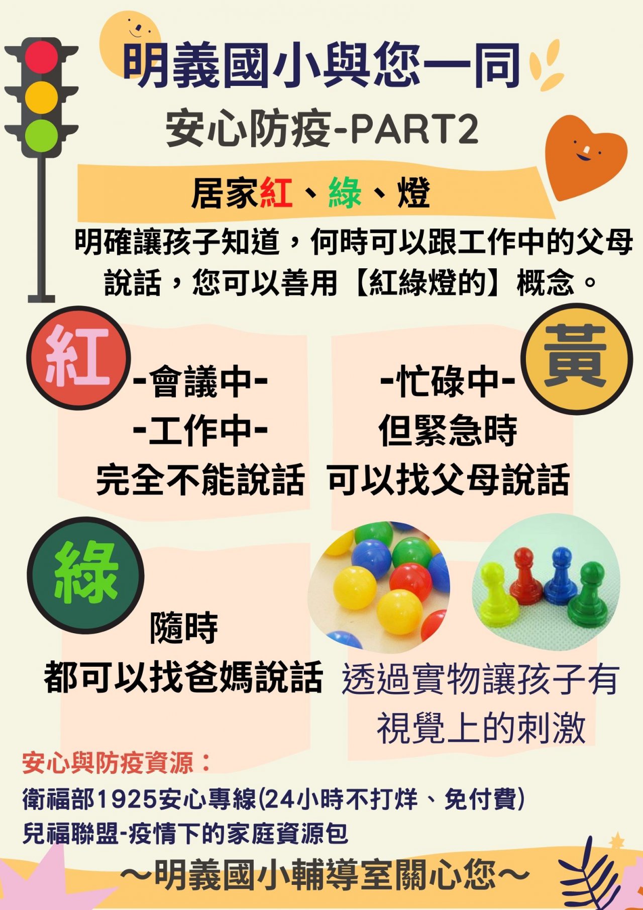 本校專輔教師賴薇如老師製作防疫安心文宣,歡迎同仁分享班級群組~~