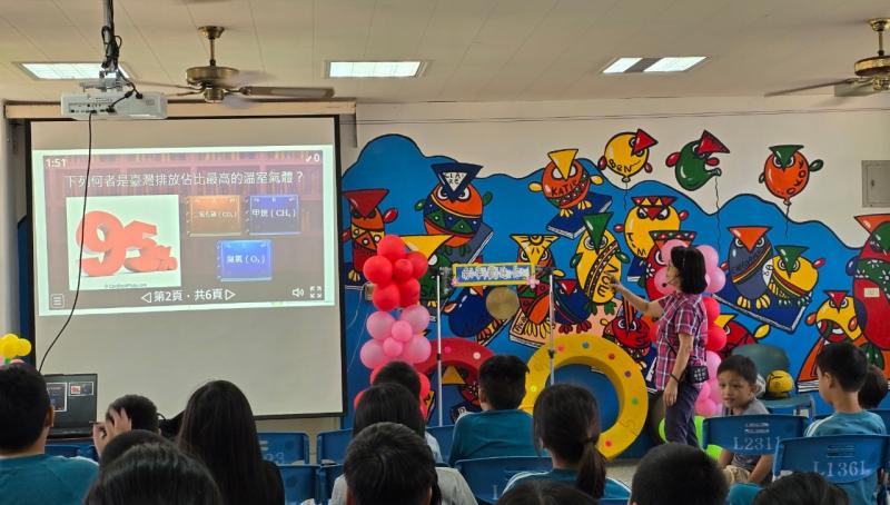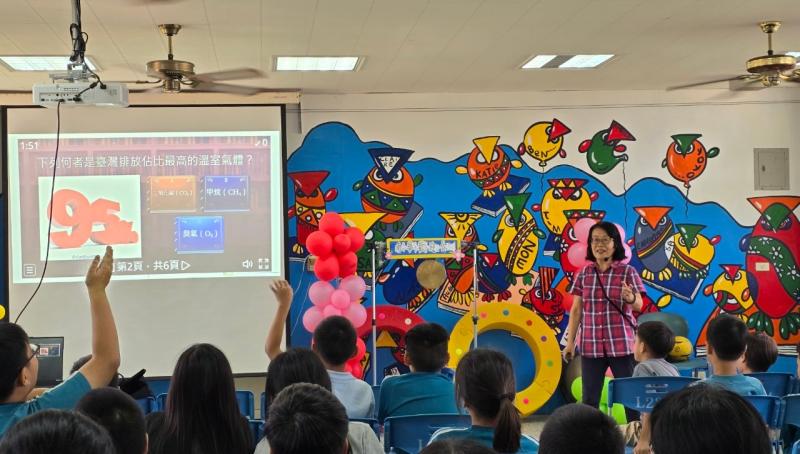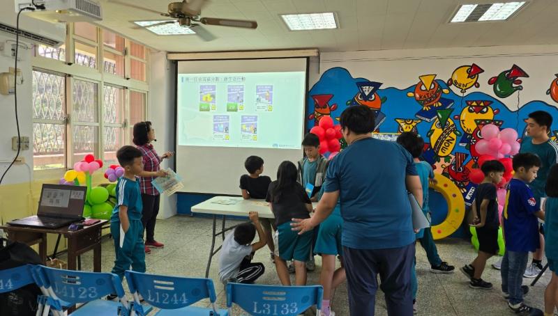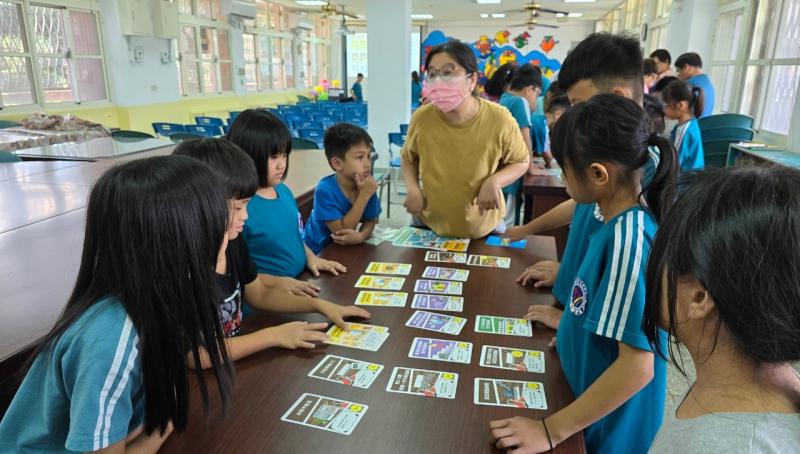 2024.08.30 新學期開學日為孩子們進行環境教育。讓孩子們在遊戲中能更清楚知道實際生活中能做那些行動來減緩地球發燒的情況。