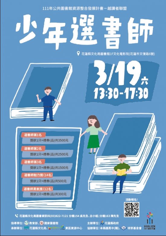 (五)活動聯絡人:活動詳情請洽本局圖書資訊科 03-8227121 分機 154 古小姐、吳先生及分機 163 陳先生。