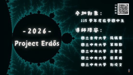 (三) 報名方式:報名至 115 年 3 月 31 日(二)止,報名網址: https://ps1tw.astro.ncu.edu.tw/ttss/index.php/2026-project-erdos/。