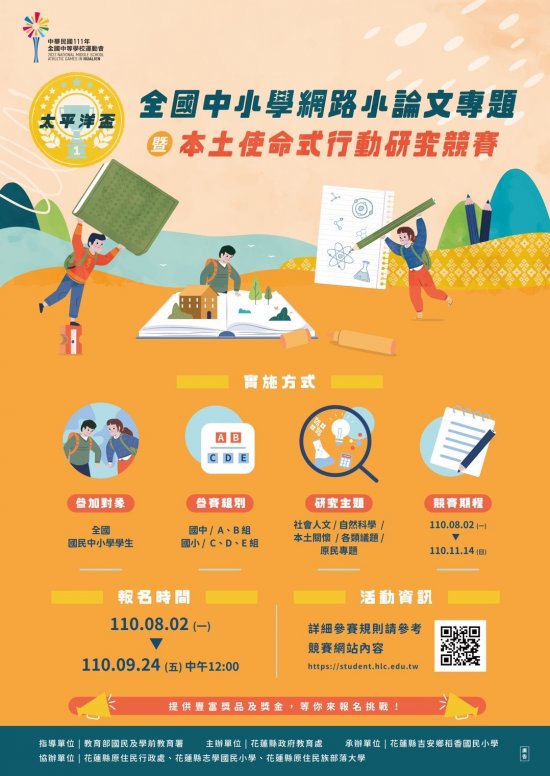 「太平洋盃 110 學年度全國中小學網路小論文專題暨本土使命式行動研究競賽實施計畫」,