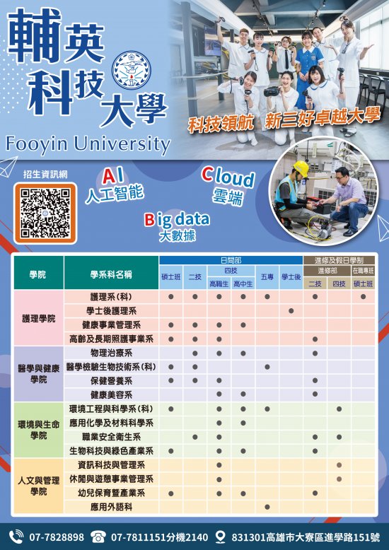三、 有關升學進路、學系科介紹、報名資格等入學相關問題,歡迎電洽招生暨入學服務中心,將由專人提供諮詢。