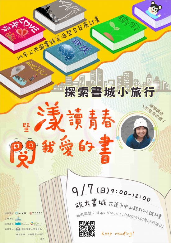 | (一) | 辦理日期及地點: 114 年 9 月 7 日(日)上午 9 時至 12 時假政大書城(花蓮市中山路 547-2 號 3 樓)辦理。 |