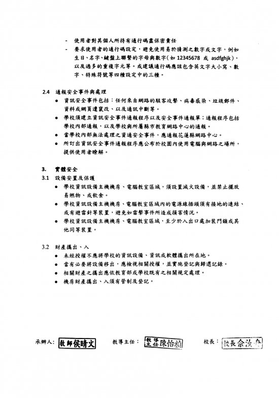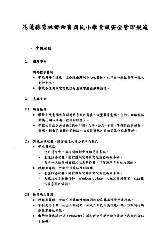 花蓮縣秀林鄉西寶國民小學校園資訊安全管理規範