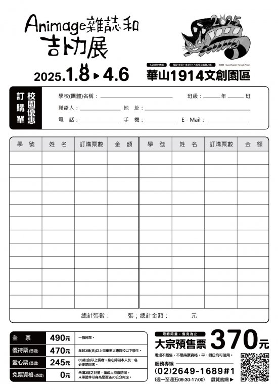 本案聯絡人:活動推廣部校園優惠票。服務專線: 02-26491689#1 (代表號)