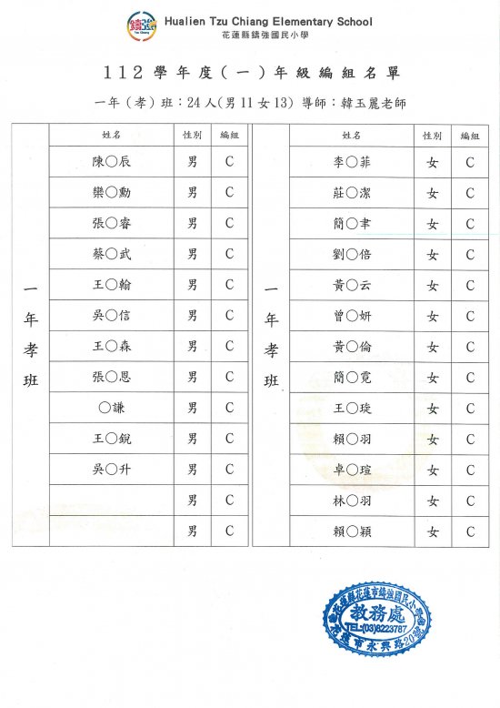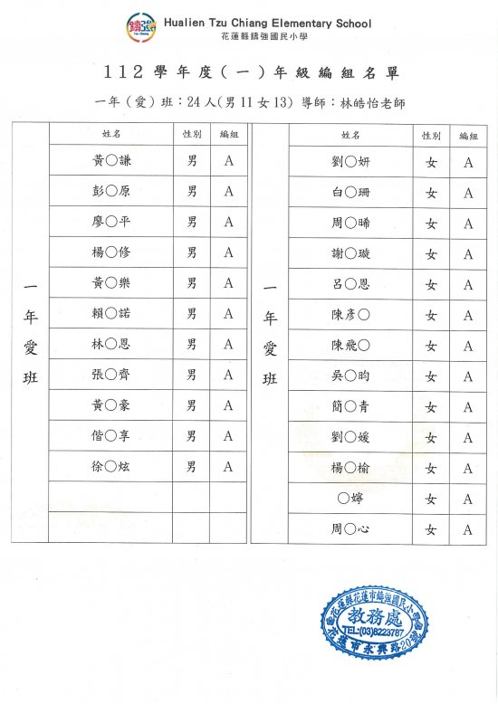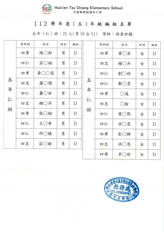 112年7月28日早上已完成一、三、五年級導師編配作業