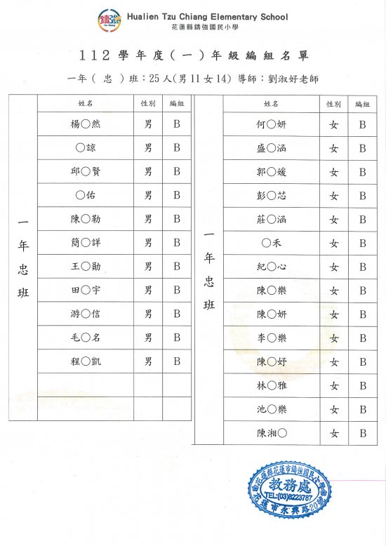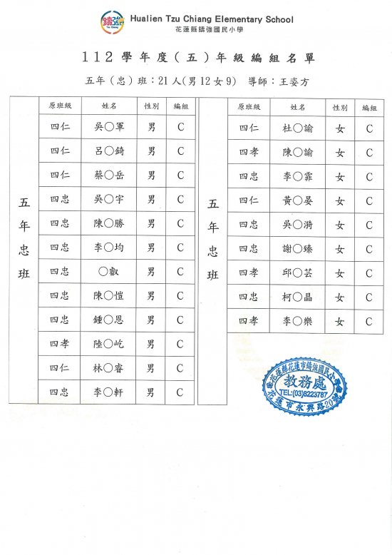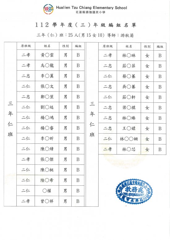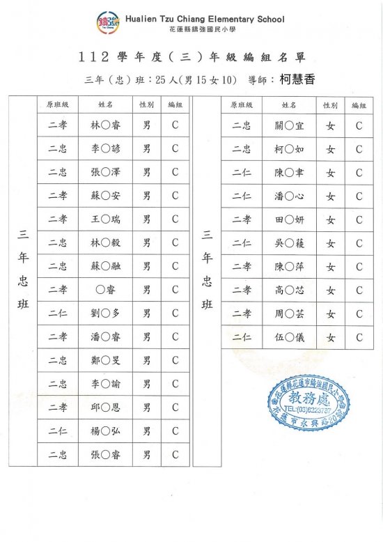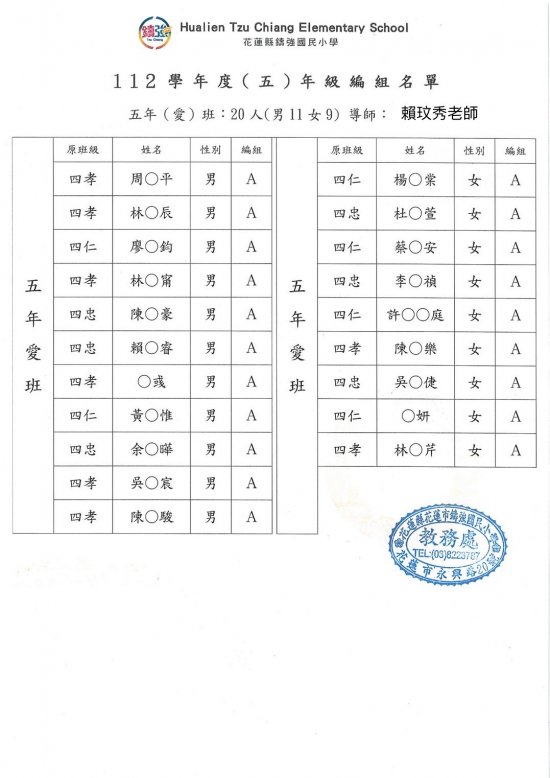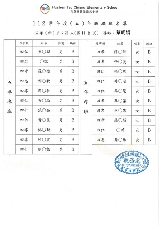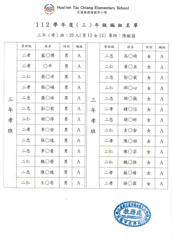 112學年度鑄強國小一、三、五年級編班公告